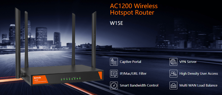 Router (เราเตอร์) TENDA W15E AC1200 Wireless Hotspot Router High Density User Access Wi-Fi speeds of up to 300 Mbps (2.4 GHz) + 867 Mbps (5 GHz)