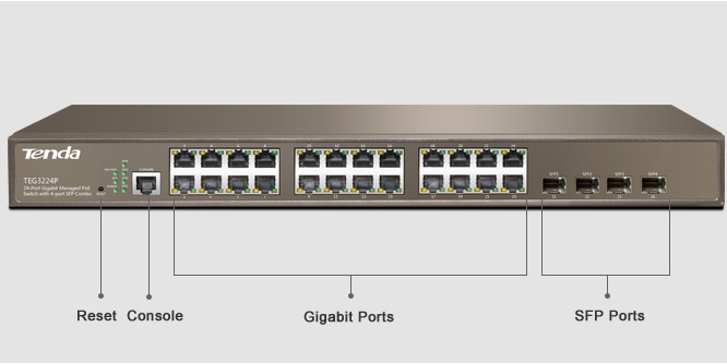 TEG3224P 24 gigabit RJ45 ports including 4 combo RJ45/SFP ports, 1U 19-inch rack-mountable