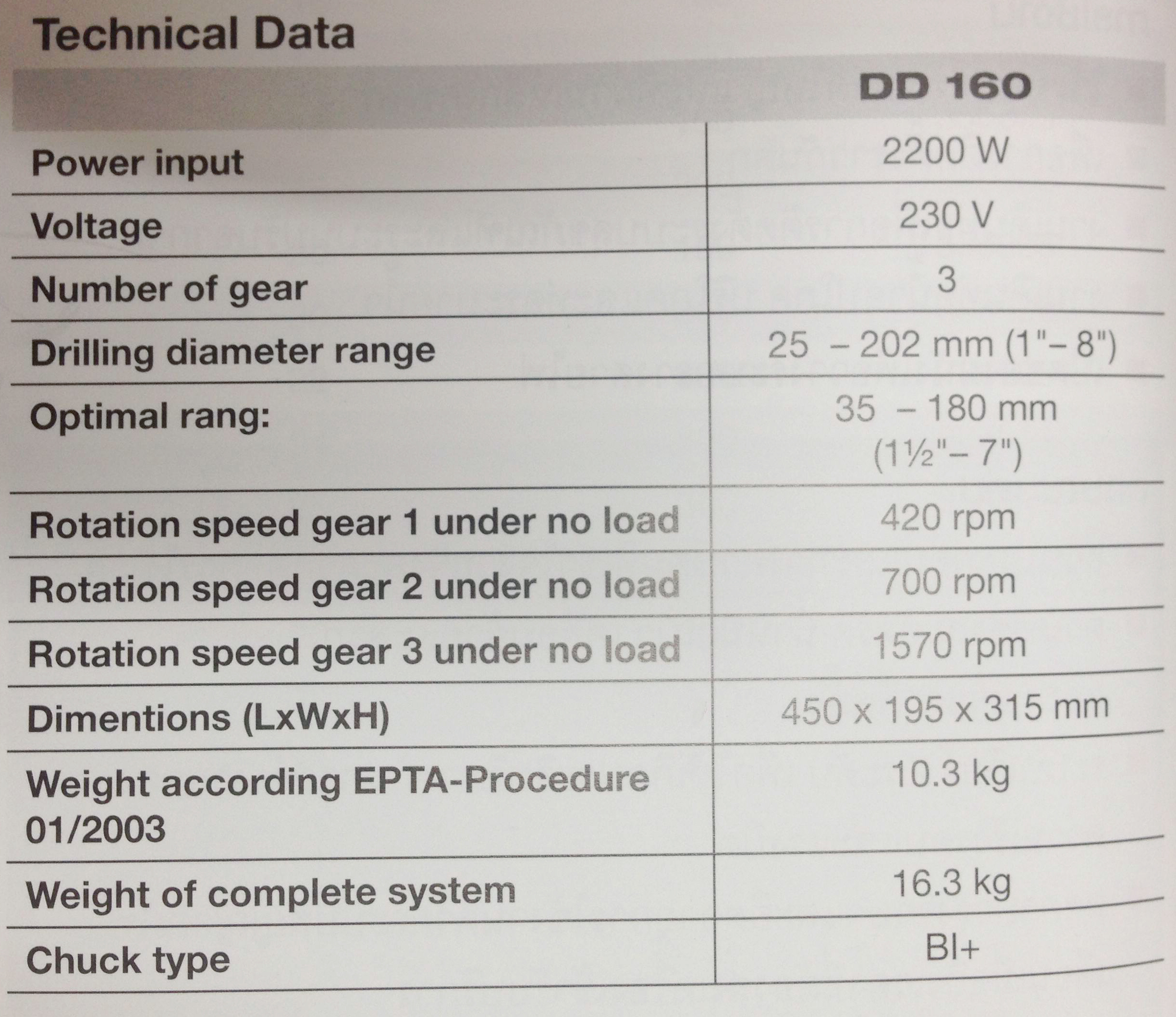 - ใช้กับการเจาะรูผ่านคอนกรีตได้สูงสุดถึงขนาด 120 มม. (7 นิ้ว)