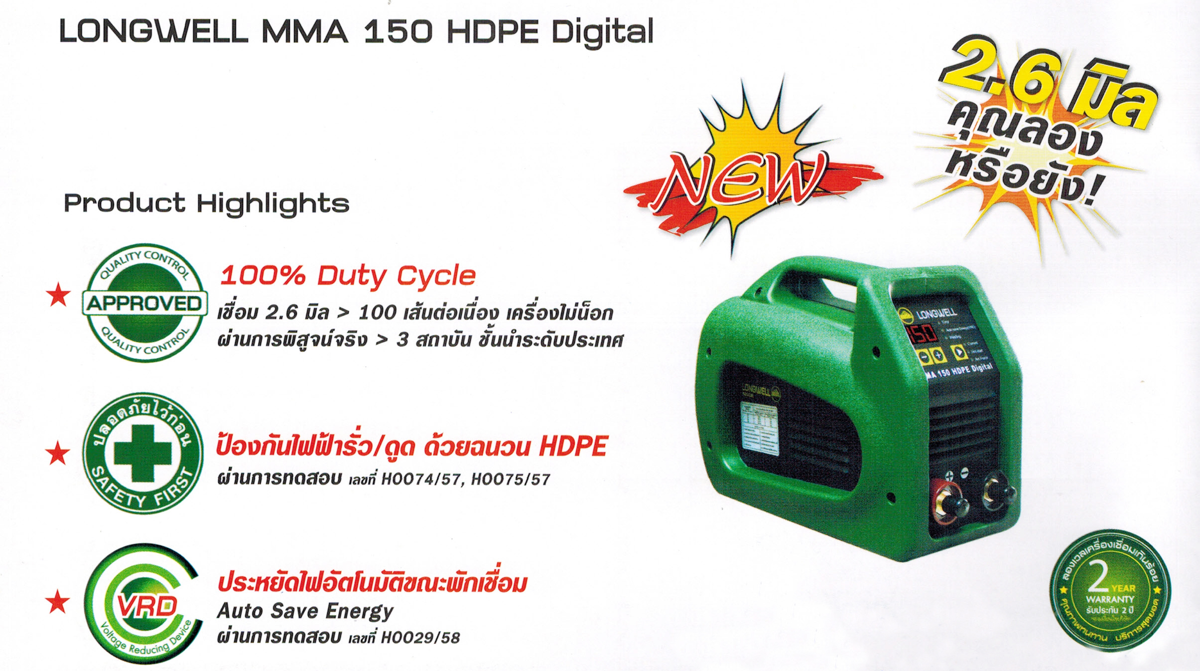 - Longwell ลองเวล ประสิทธิภาพสูง เชื่อมได้นานกว่า Duty Cycle 100%