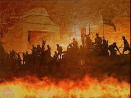 "...สั่งให้เผาพระนครและปราสาททั้ง ๓ องค์ และให้เผาอารามและวิหารเสียให้หมดด้วย และสั่งให้ทำลายกำแพงเมือง และบรรดาเข้าของที่มีอยู่ในกรุงศรีอยุธยา มีพระไตรปิฎก คือ พระธรรมวินัย เป็นต้น สั่งให้ทำลายเสียแล้วก็กลับมายังพระนครแห่งตน..."