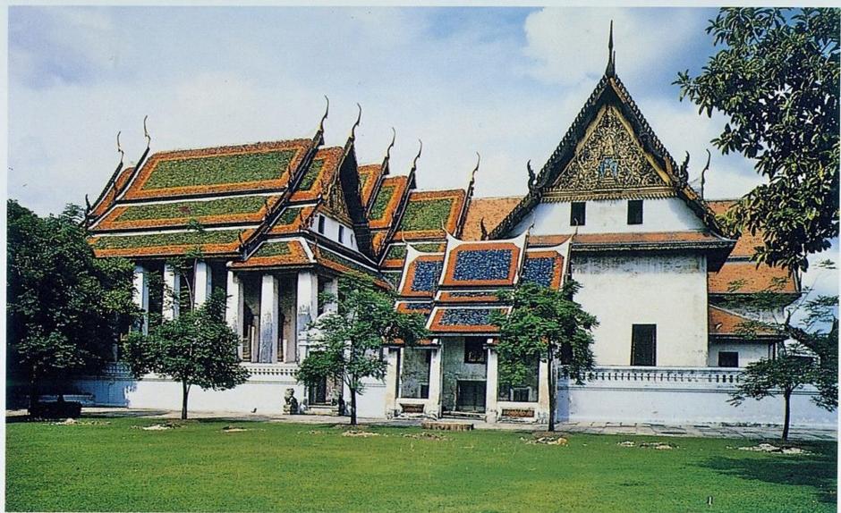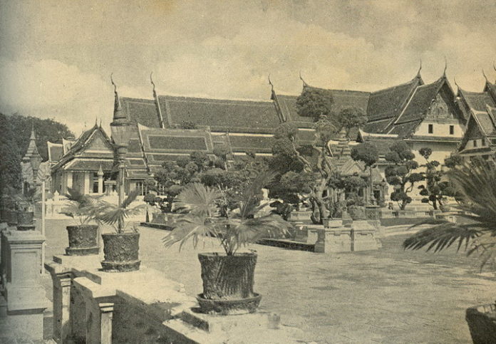 ขวามือ คือพระที่นั่งเทพสถานพิลาศ หมู่พระที่นั่งนี้ล้อมรอบด้