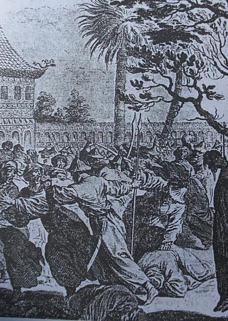 ขุนนางไทยผู้น่าสงสารได้ปฏิบัติตามคำสั่งของฟอร์บัง พออ้าปากคำแรกว่าจะจับ มักกะสันทั้ง ๖ คนก็โยนหมวกลงพื้น ชักกริชออกจากฝัก กระโจนเข้ามาอย่างมัจจุราช แทงขุนนางไทยคนนั้นและอีก ๖ คนในปะรำ ฟอร์บังถอยออกมาแล้วสั่งทหารที่ติดตามยิงกราด มักกะสันคนหนึ่งยังฝ่ากระสุนเข้าถึงฟอร์บังได้ เขาจึงแทงด้วยหอกเข้าที่ท้อง แต่มักกะสันที่มีหอกทะลุคาท้องก็ไม่ได้แสดงอาการเจ็บปวด กลับดันเข้ามาจะแทงฟอร์บังให้ได้ ฟอร์บังไม่กล้าชักหอกออกจากท้อง และใช้ดันมักกะสันบ้าเลือดไว้ขณะที่ต้องถอยกรูด จนทหารคนหนึ่งได้ฆ่ามักกะสันตาย