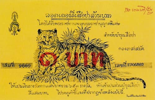 การออกล็อตเตอรีที่อื้อฉาวนี้เกิดขึ้นในปี พ.ศ.๒๔๖๗ สมัยรัชกาลที่ ๖ มีชื่อว่า “ล็อตเตอรีเสือป่าล้านบาท” โดย พระยานนทิเสนสุเรนทรภักดี ปลัดบัญชาการกระทรวงวัง และเป็นนายพลเสนาธิการเสือป่าด้วย ได้รับพระบรมราชานุญาตจากพระบาทสมเด็จพระมงกุฎเกล้าเจ้าอยู่หัว ให้ออกล็อตเตอรีเสือป่าจำนวนล้านฉบับ ฉบับละ ๑ บาท เพื่อหารายได้ซื้ออาวุธให้เสือป่า เป็นเงินรางวัล ๖๐ เปอร์เซ็นต์ อีก ๔๐ เปอร์เซ็นต์บำรุงเสือป่า รางวัลที่ ๑ จะได้รับเงินถึง ๑๐๐,๐๐๐ บาท แต่ถ้าจำหน่ายไม่หมดเงินรางวัลก็จะลดลงตามส่วน