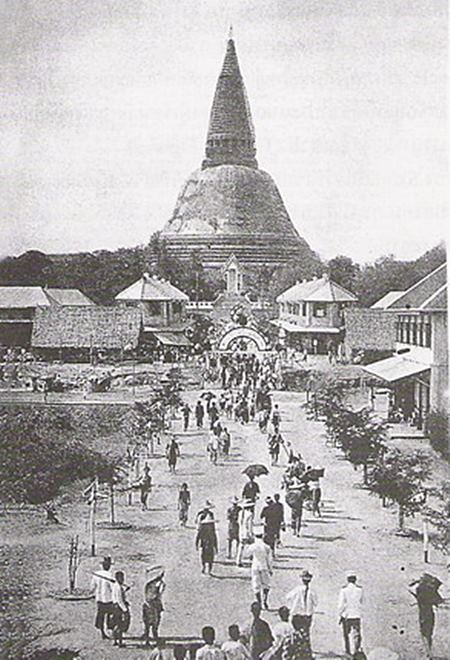 วัดพระปฐมเจดีย์ เมื่อปี พ.ศ 2495 ซี่งบริเวณนี้ เจ้าหญิงและหม่อมห้ามในกรมห