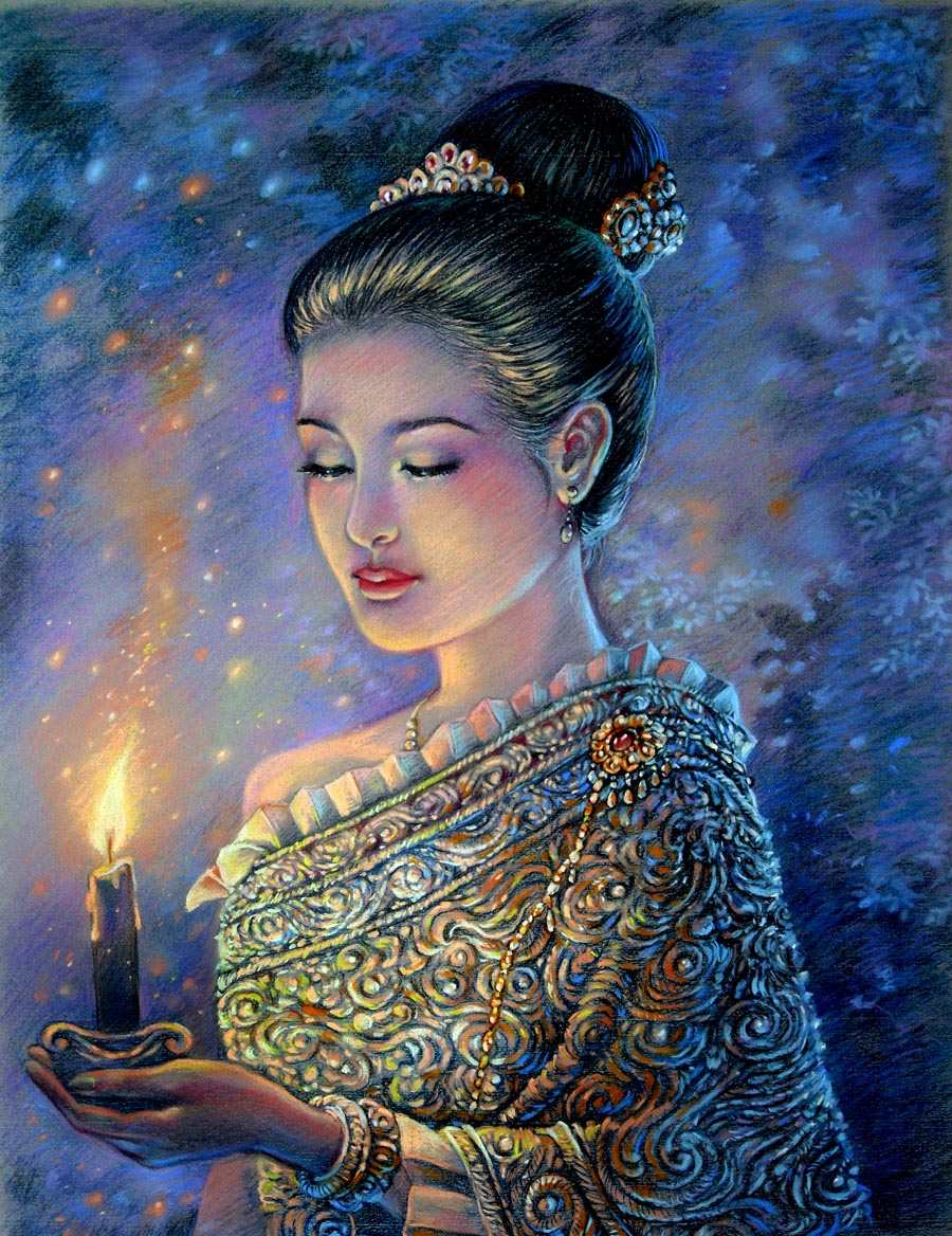 ภาพวาดหญิงไทยสมัยอยุธยา โดย คุณหญิงวินิตา ดีถียนต์