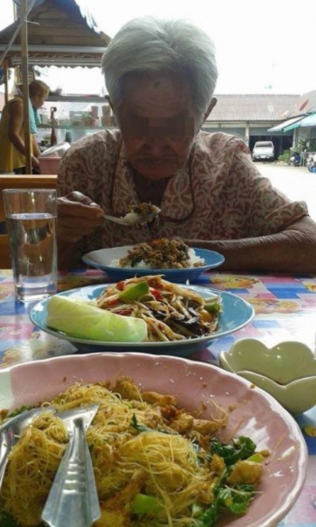 …อ้อกำลังกินข้าวอยู่ค่ะ เห็นคณุยายคนนี้เดินเซมา ขอข้าวจากร้านริมทางที่อ้อกำลังนั่งกินอยู่ค่ะ อ้อเลยร้องตะโกนบอกว่า ให้รวมในบิลนู๋เลยค่ะ…..