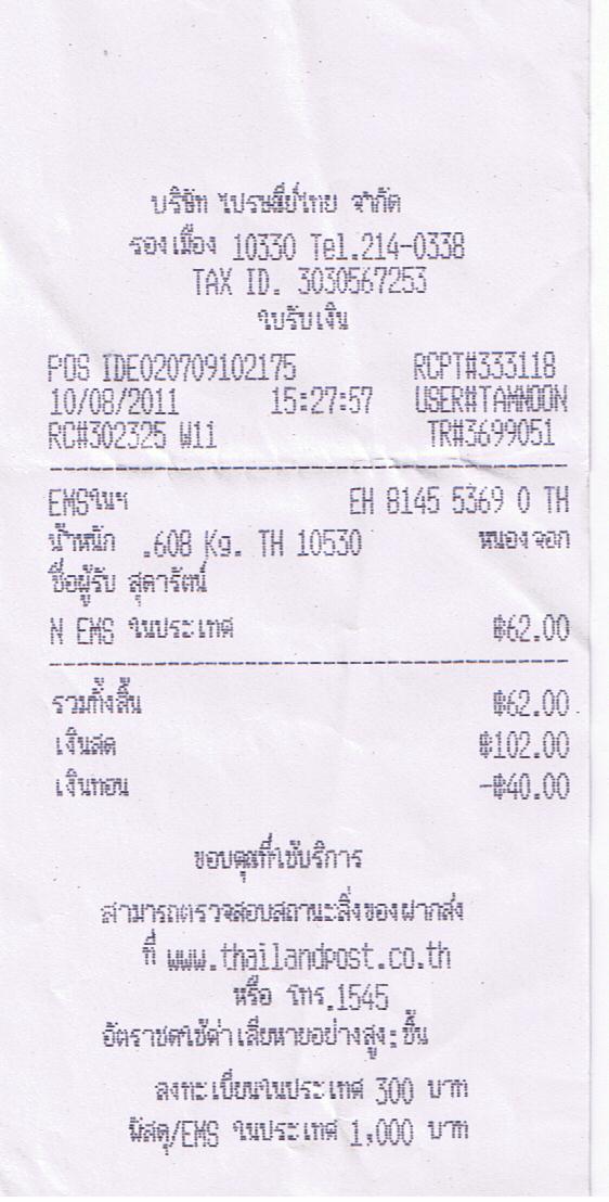 คุณสุดารัตน์ > EH 814553690 TH ส่งสินค้าให้เมื่อวานเรียบร้อยแล้วนะคะ โอกาศหน้าเชิญเลือกชื้อสินค้าเครื่องสำอางเกาหลี คุณภาพของแท้ ส่งของรวดเร็ว กับร้านของเราได้อีกนะคะขอบคุณมากๆค่ะ