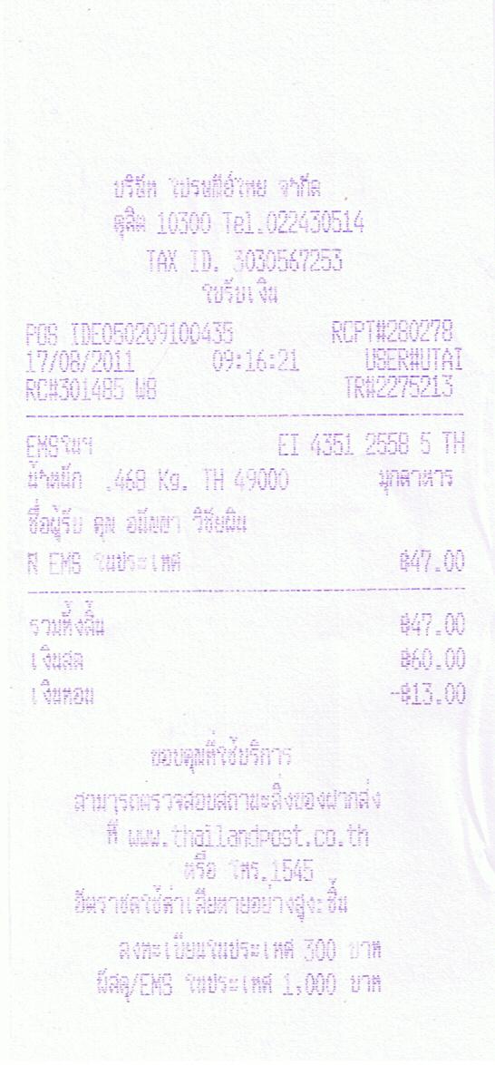 คุณอนัญญา > EI 435125585 TH ส่งสินค้าให้เรียบร้อยแล้วนะคะ โอกาศหน้าเชิญเลือกชื้อสินค้าเครื่องสำอางของแท้คุณภาพ จากร้านของเราได้อีกนะคะขอบคุณมากๆค่ะ