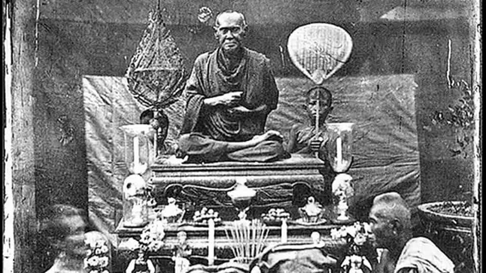 สมเด็จพระจอมเกล้าเจ้าอยู่หัว รัชกาลที่ 4 แห่งกรุงรัตนโกสินทร์ กระบวนเสด็จ ร.4 ที่วัดโพธิ์ กรุงเทพมหานคร พระราชธิดาในล้นเกล้า ร.4 ทุกพระองค์ฉลองพระองค์ตามความนิยมในตอนต้น ล้นเกล้า ร.5 พระเกศาดอกกระทุ่ม ทรงพระภูษาโจงด้วยผ้าไหม ฉลองพระองค์คอตั้ง ผ่าหน้า แขนยาวทรงกระบอก ตกแต่งรอบพระศอและข้อพระหัตถ์ด้วยลูกไม้ ทรงสไบแพรจีบคลุมพระกร กลัดเข็มกลัดที่คอฉลองพระองค์ 1) แถวหลัง จากซ้าย พระเจ้าบรมวงศ์เธอพระองค์เจ้าอรไทยเทพกัญญา, พระเจ้าบรมวงศ์เธอ พระองค์เจ้ากนกวรรณเลขา, พระเจ้าบรมวงศ์เธอ พระองค์เจ้าวาณีรัตนกั...