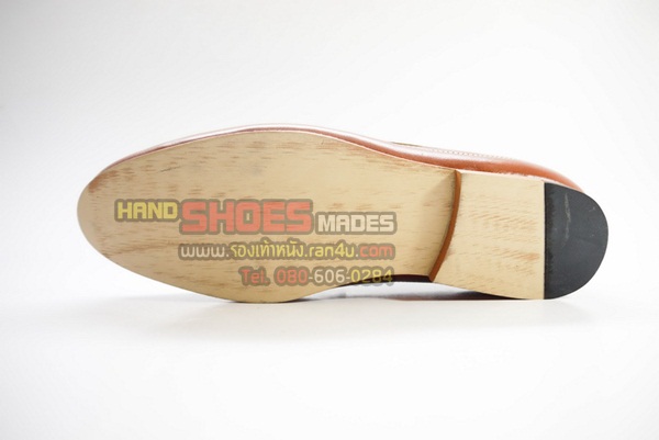 U708 รองเท้าคัทชูหนังเรียบ สีน้ำตาล พื้นไม้