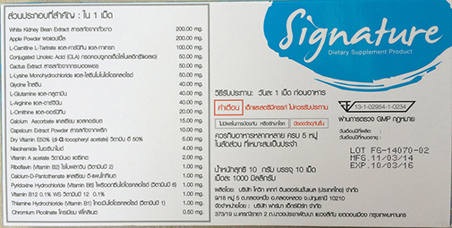 Signature ซิกเนเจอร์ ผลิตภัณฑ์อาหารเสริมลดน้ำหนัก