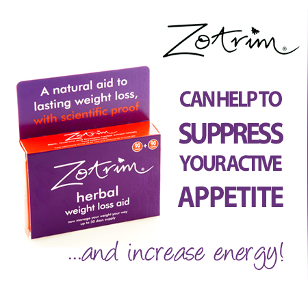 Zotrim is a herbal slimming tablet, designed to reduce the amount of food you eat by making you feel fuller for longer.It works by suppressing your appetite making you eat less, and reducing your cravings for snacks in between meals.