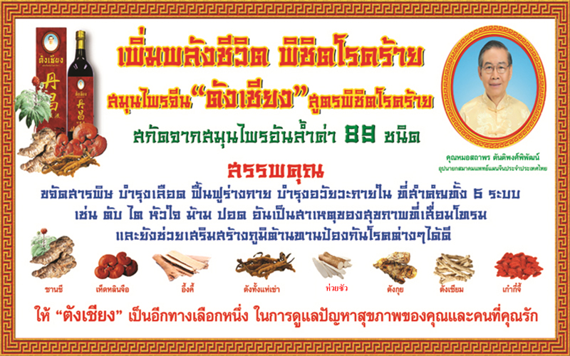 สินค้ารับประกันคุณภาพ 5 โรคร้าย ที่เราท้าท่านดื่ม ตังเชียง