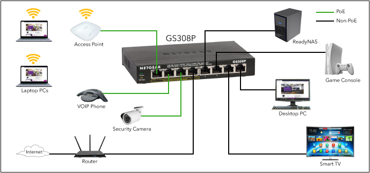- NETGEAR 8-Port Gigabit Ethernet Unmanaged PoE Switch (53W) (GS308P)