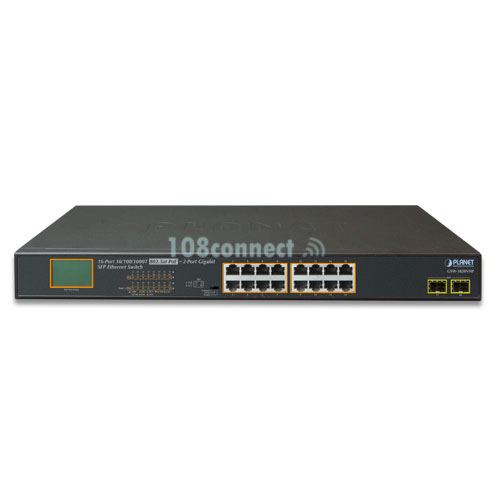 SWITCH (สวิตซ์) PLANET GSW-1820VHP 16-Port 10/100/1000T 802.3at PoE + 2-Port Gigabit SFP Ethernet Switch with LCD PoE Monitor (300W)