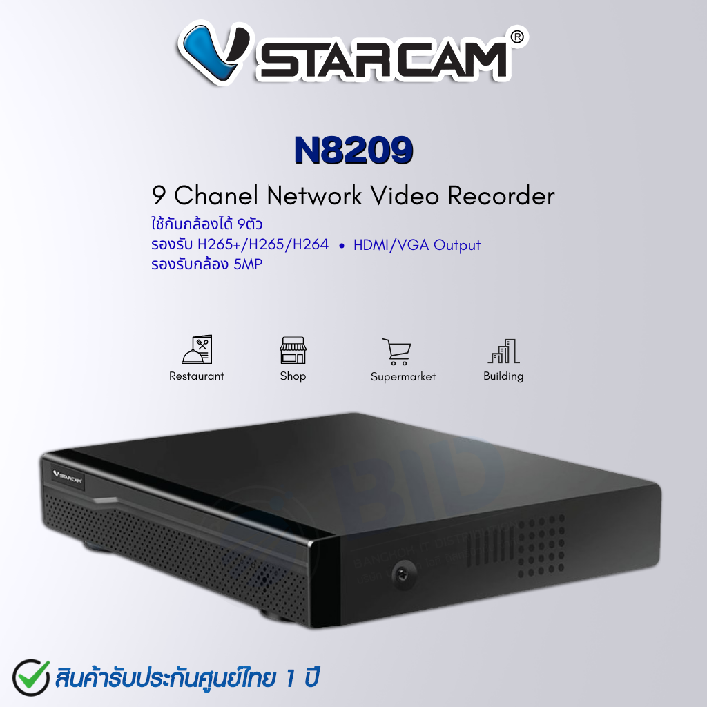 เครื่องบันทึก Vstarcam NVR 9 ช่อง รุ่น N8209 - รองรับ 9 ช่องสัญญาณ (ใช้กับกล้องได้ 9 ตัว) - รองรับ HDD 1TB. - 6TB. (ไม่มีแถม) - ความละเอียด 5 ล้าน พิกเซล