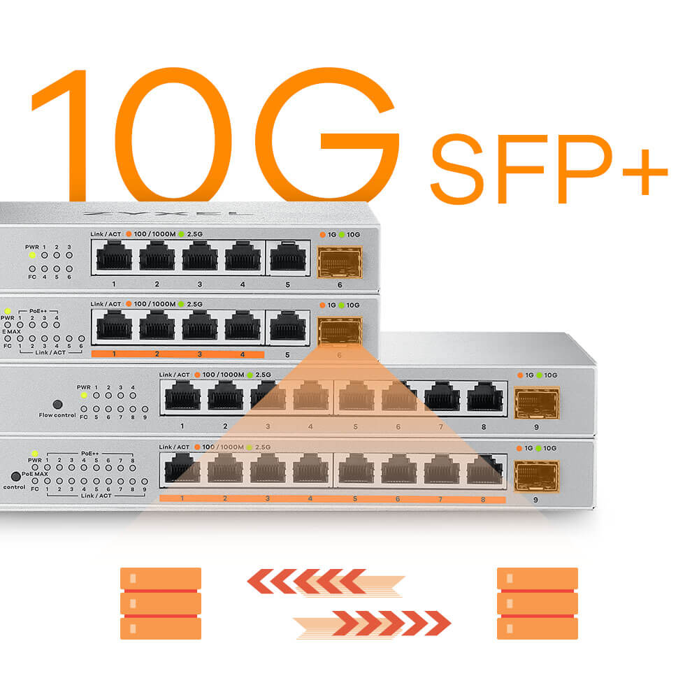 โมเดล 10-Gigabit SFP+ เพิ่มความเร็วของเครือข่ายสำหรับการอัปโหลดและดาวน์โหลดได้อย่างรวดเร็วผ่าน NAS และเซิร์ฟเวอร์ ช่วยให้ผู้สร้างเนื้อหาหรือบุคคลที่สร้างสื่อดิจิทัลสามารถทำงานได้อย่างมีประสิทธิภาพมากขึ้น ไฟล์ขนาดใหญ่ เช่น วิดีโอหรือภาพความละเอียดสูง สามารถถ่ายโอนได้ในเวลาสั้นลงอย่างมีนัยสำคัญ ช่วยประหยัดเวลาการผลิตที่มีค่าได้อย่างมาก