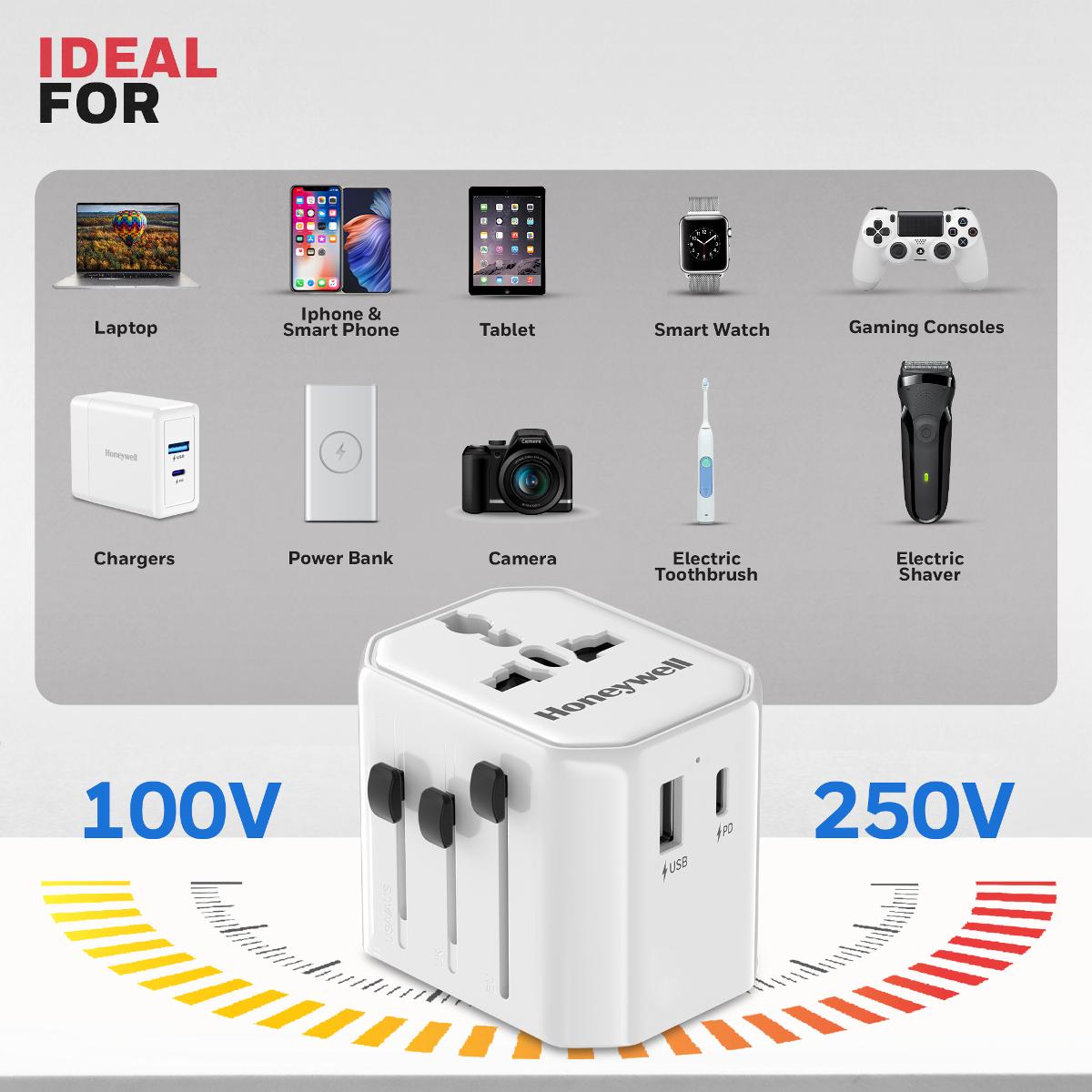 Honeywell Universal World Travel Adapter 12W - White HC000061CHGTRVWHT12W