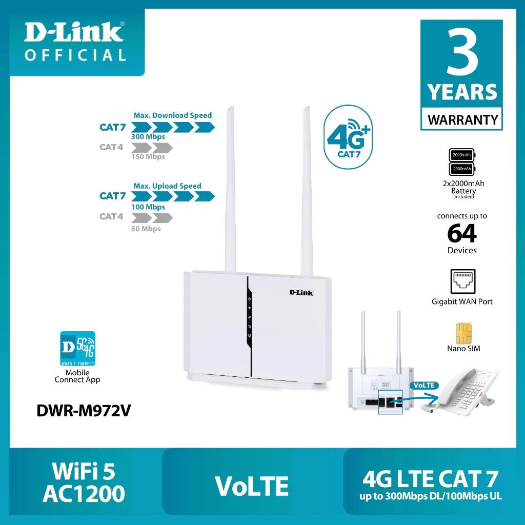 4G Router (เราเตอร์ซิม) D-LINK DWR-M972V Cat7 AC1200 Wireless Dual Band Gigabit Router, Downlink: Up to 300 Mbps / Uplink: Up to 100 Mbps (สินค้ารับประกัน 3 ปี)