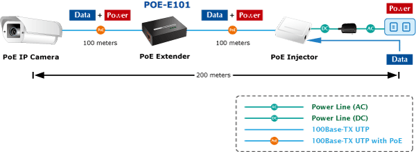 - Extends the range of PoE by an additional 100 meters (328ft.)