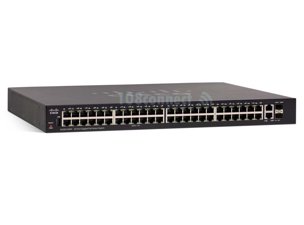 SG250-50HP-K9 50-Port Gigabit PoE Smart Switch 48 x 10/100/1000, 2 x Gigabit SFP/RJ-45,Rack-mountable