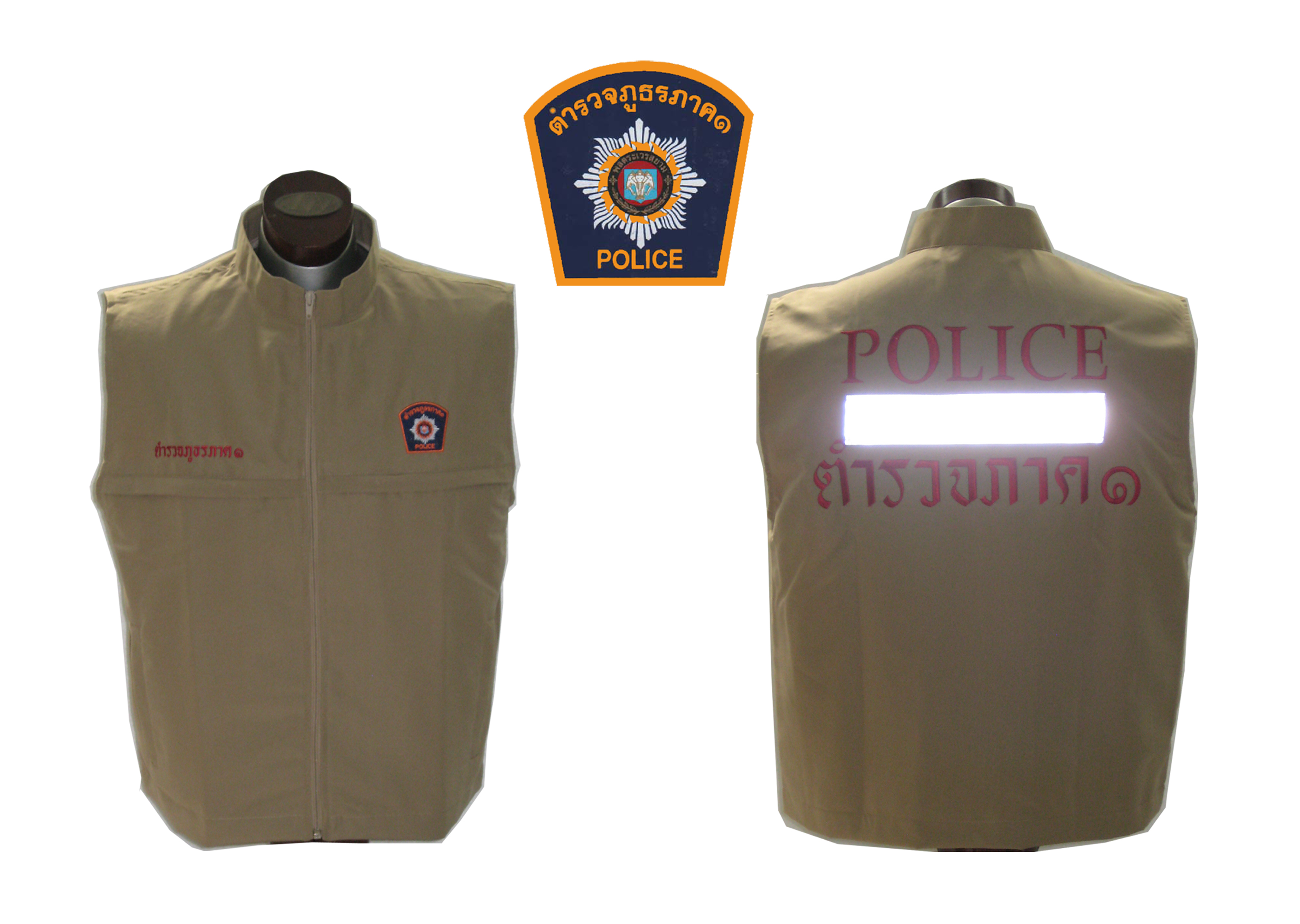 ผมส่งตัวอย่างเสื้อกั๊กตำรวจนครบาล พร้อมกับตัวอย่างผ้าสะท้อนน้ำ 3 สี สีเทา,ดำ,ทรายทอง ไปให้ดูนะครับ