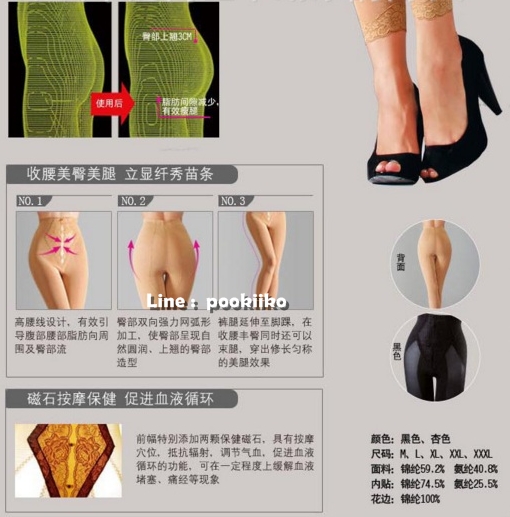 - กางเกงช่วยกระชับต้นขา น่องขา กระตุ้นการเผาผลาญ ช่วยให้เรียวขาดูสมส่วน (เน้นกระชับต้นขาเรียวเล็ก-ยกก้นที่ห้อยย้อยและสะโพกที่หย่อนยาน)