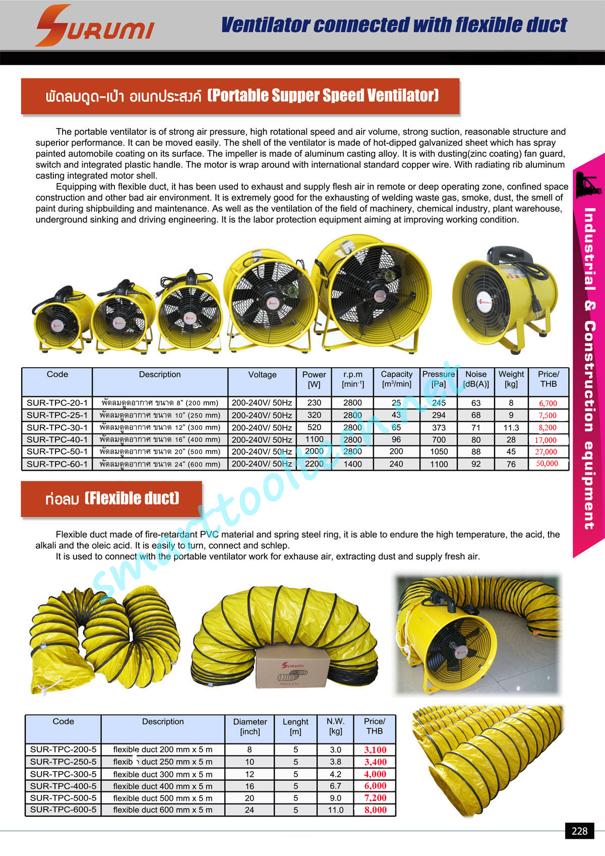 พัดลมดูด - เป่า อเนกประสงค์ SURUMI มีขนาด 8 นิ้ว - 24 นิ้ว เหมาะสำหรับงานทาสี งานที่มีฝุ่นละออง หรือควันที่เกิดจากงานเชื่อมต่างๆ ภายในอาคาร ที่อากาศถ่ายเทไม่สะดวก ใช้เพื่อดูด หรือ เป่า ฝุ่นละอองขนาดเล็ก และควัน ที่ทำลายสุขภาพ