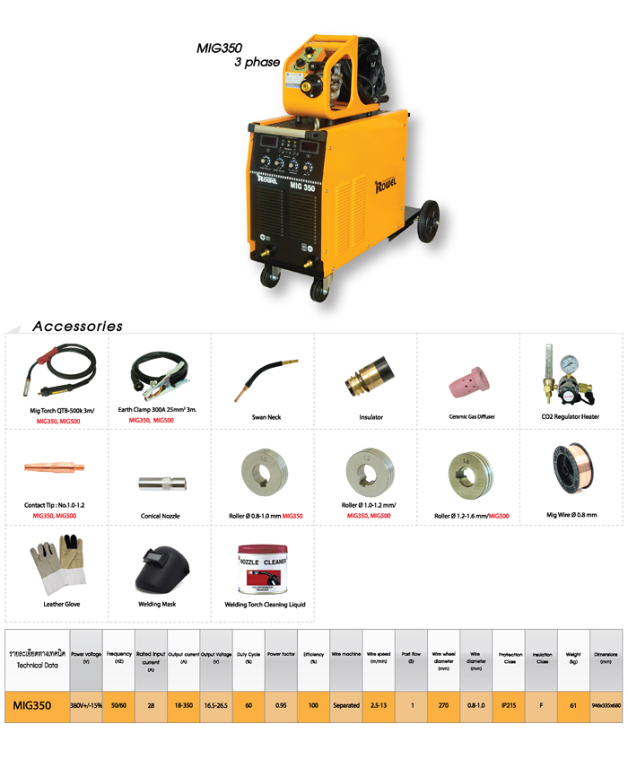 ตู้เชื่อมไฟฟ้า MIG350 (380V.) Rowel Professional รับประกันระบบ 3 ปี