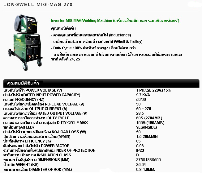 เครื่องเชื่อม MIG-MAG 270 Longwell