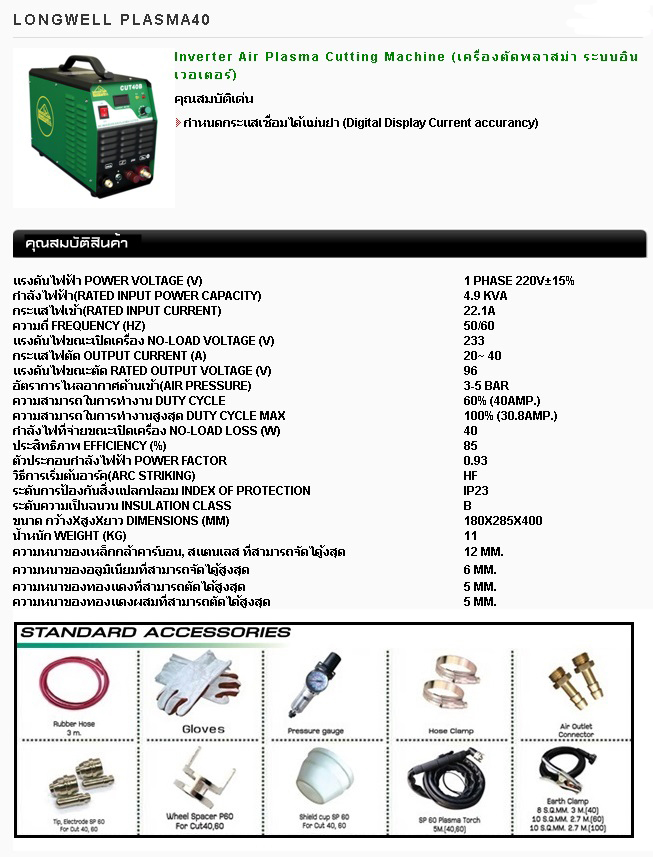 เครื่องตัดพลาสม่า Plasma CUT 40 Longwell