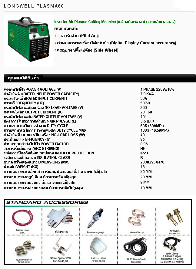 เครื่องตัดพลาสม่า Plasma CUT 60s Longwell