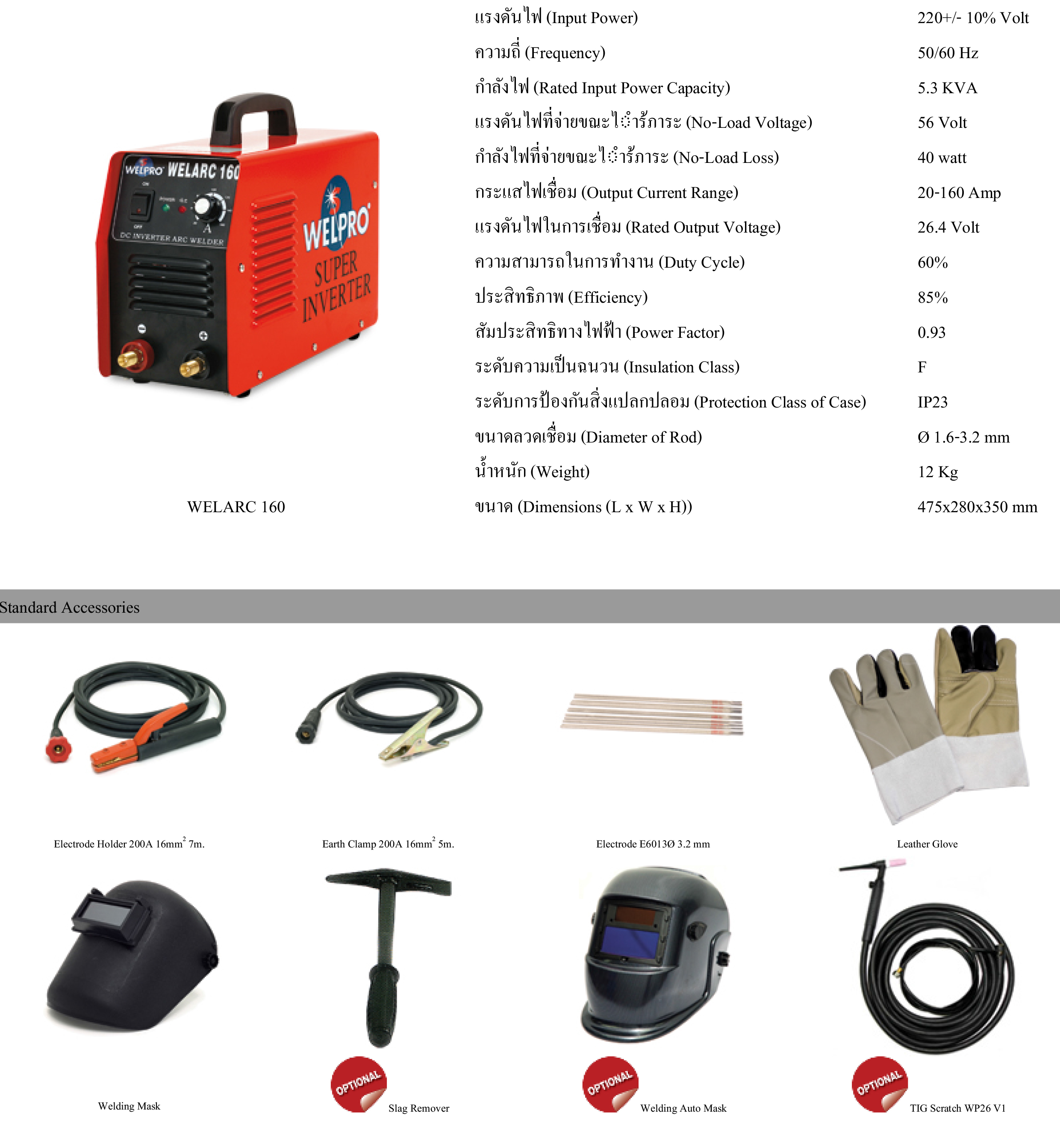 เครื่องเชื่อม MMA รุ่น WELARC160 Welpro