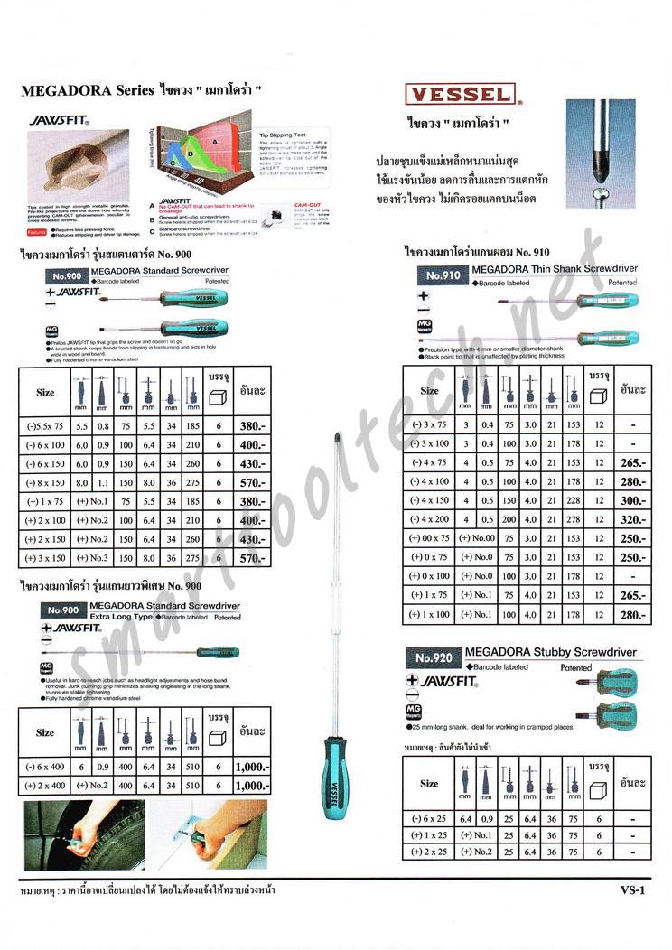 อีเมลล์: smarttooltech@gmail.comไขควง VESSEL เป็นไขควงที่มีคุณภาพอันดับต้นๆของญี่ปุ่น แม้ว่าบางรุ่นจะย้ายฐานการผลิตไปยังประเทศอื่นเพื่อลดต้นทุน แต่ก็ยังคงรักษาคุณภาพมาตรฐานของไขควง VESSEL ไว้ได้เป็นอย่างดี และมีสินค้าให้เลือกใช้มากมายหลายชนิดไม่ว่าจะเป็น ไขควงด้ามยาง ไขควงตอก ไขควงกระแทก ไขควงลม ดอกไขควง ไขควงชุด หรือแม้แต่ ไขควงเช็คไฟ ท่านสามารถดูรายละเอียดสินค้าของไขควง VESSEL ได้ตาม Link ด้านล่าง หรือติดต่อทีมงาน Smarttooltech หากมีข้อสงสัยเพิ่มเติม