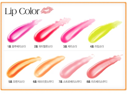 1 Etude Juicy Pop Tube Blueberry Soda 5 Etude Juicy Pop Tube Orange Soda