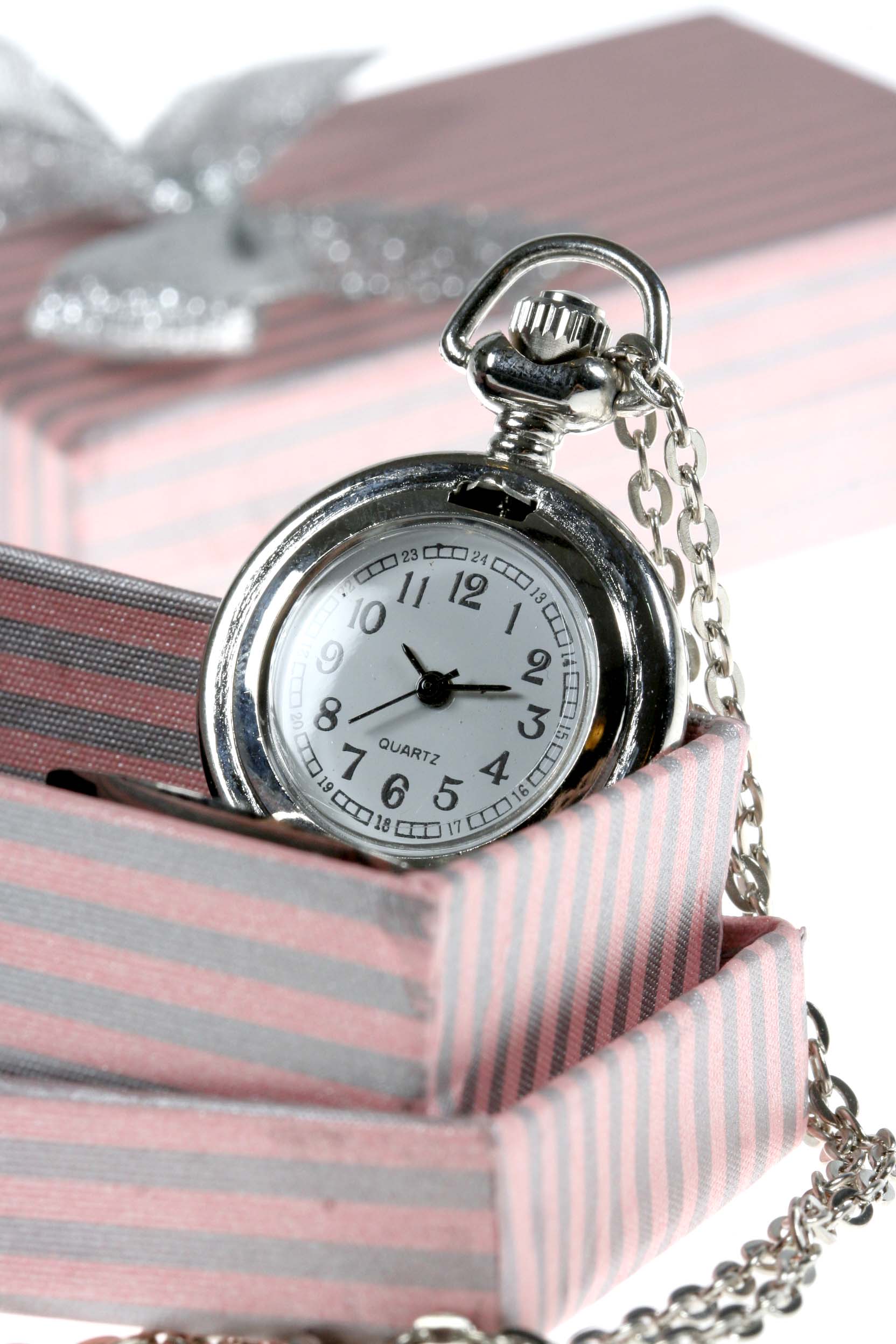 นาฬิกาพกรุ่นเล็ก พร้อมสร้อยคอไว้ห้อย ลายน่ารัก ด้านหลัง สามารถสลักชื่อ เป็นของขวัญที่ระลึกได้