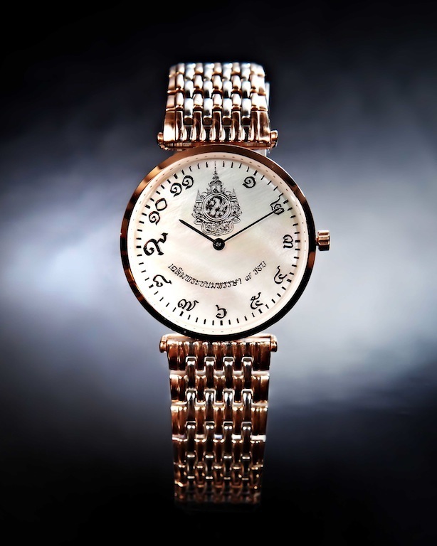 นาฬิกาข้อมือแสตนเลส เรือนบางเฉียบ พร้อมตราสัญญาลักษณ์ 84 พรรษา หน้าปัดมุกแท้ 7 สี นาฬิกาข้อมือแสตนเลส เรือนบางเฉียบ พร้อมตราสัญญาลักษณ์ 84 พรรษา หน้าปัดมุกแท้ 7 สี