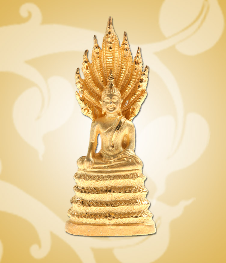 พระนาคปรก ชุบกะไหล่ทอง18 k เลี่ยมกรอบทองเหลือง กันน้ำ 100% พร้อมแหนบ