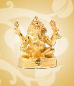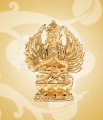 พระพิฆเนศปางนั่งประทานพร องค์เล็กสีทอง เลี่ยมกรอบทองเหลืองพร้อมแหนบสแตนด์เสล