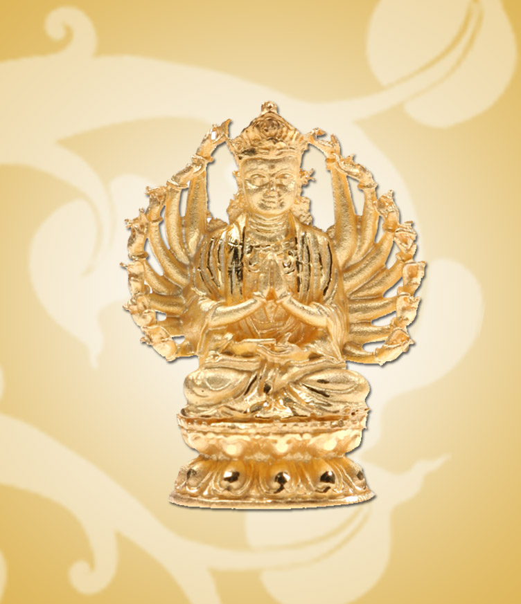 พระแม่กวนอิมพันมือ ชุบกะไหล่ทอง18 k เลี่ยมกรอบทองเหลือง กันน้ำ พร้อมแหนบ