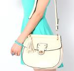 ดีไซน์เก๋ ฝากระเป๋าพร้อมตัวล็อคดูเก๋ ลงตัวค่ะ และตกแต่งด้วยพู่ หูกระเป๋าสำหรับถือคล้องแขนก็เก๋ มี สายสะพายแยกต่างหากค่ะ มี 3 สี ให้เลือกค่ะ สีขาวครีม ivory, สีส้ม และ สีน้ำตาลค่ะ ขนาด 27cmx26cmx10cm ราคาปลีก 908 บาท