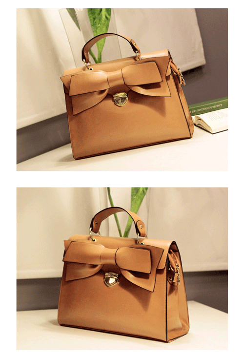 กระเป๋าaxixi แฟชั่นเกาหลี แบรนด์ดัง รุ่น T025 รุ่นนี้น่ารัก สดใส สีเหลืองน้ำตาล ฝากระเป๋าเป็นโบว์สวย ราคาปลีก 708 บาท