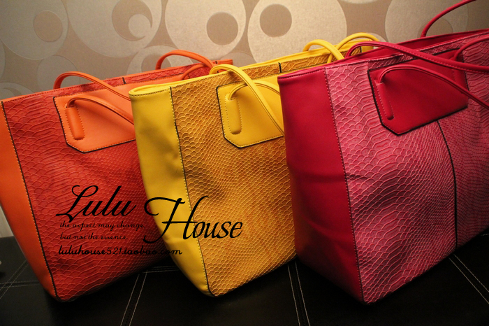 กระเป๋าLuluhouse สีชมพูสดใสมาก กระเป๋าด้านหน้าทำด้วยหนังลวดลายพิเศษ สามารถถือ คล้องแขน และสะพายได้เหมาะสมสำหรับหลายๆ โอกาส ใบใหญ่สามารถใส่เอกสารและสัมภาระได้ มีให้เลือก 3 สี ด้วยกัน คือ สีส้ม สีชมพู สีเหลือง ราคาปลีก 980 บาท