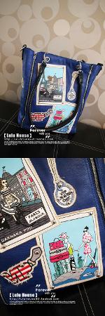 กระเป๋าLuluhouse รุ่น LL115blu1 สีน้ำเงินSapphire blue ตกแต่งด้วยซิบด้านข้างกระเป๋า และภาพที่พิมพ์ลงบนกระเป๋าก็ดูเก๋สุดๆ หูกระเป๋าถูกออกแบบมาอย่างดี ดีไซน์ได้ลงตัวจริงๆ สามารถถือ คล้องแขน และมีสะพายให้ ราคาปลีก 1,255 บาท