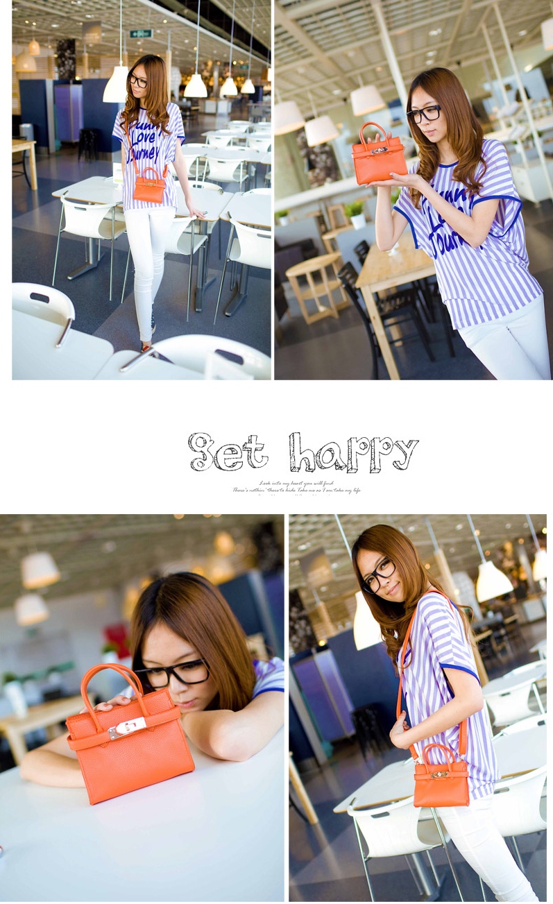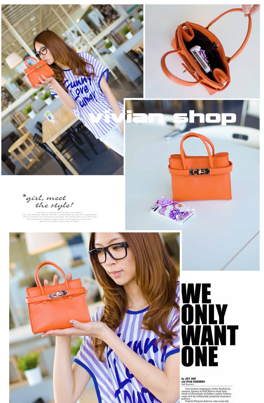 กระเป๋าสไตล์เกาหลี นำเข้าจากเจ้าของแบรนด์ 100% ใบเล็กน่ารักมาก กะทัดรัด กระเป่ามีสายคาดด้านหน้าดูน่ารักค่ะ ใช้ได้หลายโอกาส เหมาะสำหรับวัยรุ่น วัยทำงาน สามารถถือและมีสายสะพายให้ มี 4 สี คือ สีชมพูสดใส สีส้ม สีดำ สีแดง ราคาปลีก 528 บาท ราคาส่ง 478 บาท