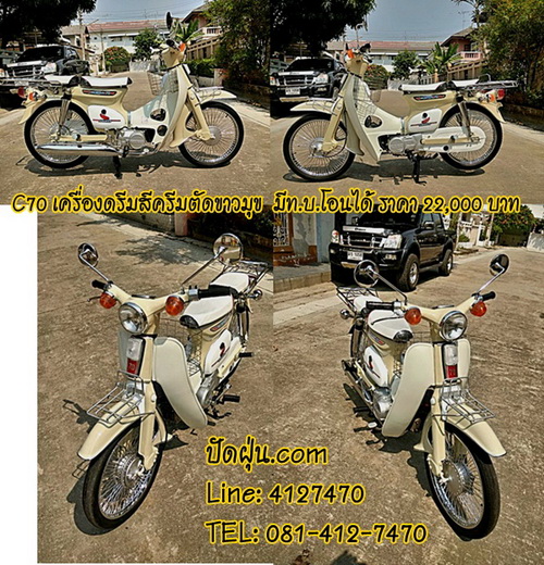 C70 เครื่องดรีมสีครีมตัดขาวมุข ระบบ 4 เกียร์ มีท.บ.โอนได้ ราคา 22,000 บาท
