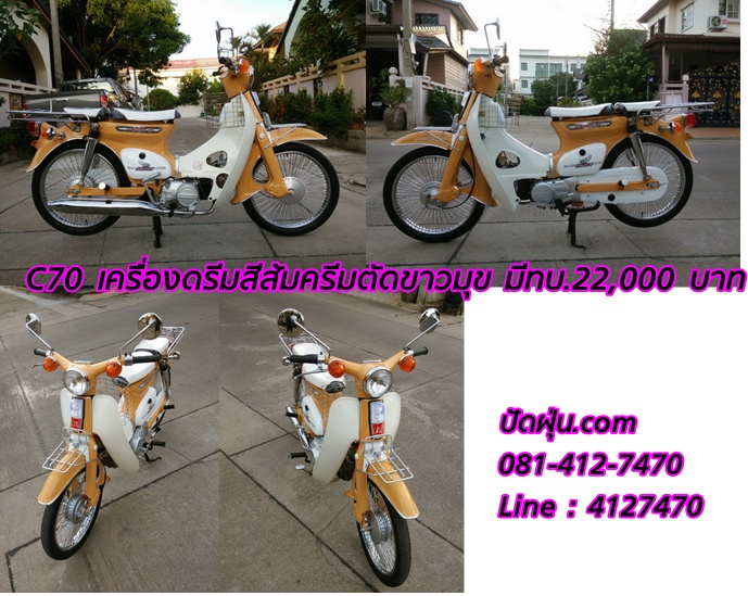 C70 เครื่องดรีมสีครีมตัดขาวมุข ระบบ 4 เกียร์+มีท.บ.โอนได้ ราคา 22,000 บาท