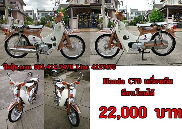 C70 เครื่องดรีม สีน้ำตาลทองตัดขาวมุข ระบบ 4 เกียร์ไ มีท.บ.โอนได้ ราคา 22,000 บาท