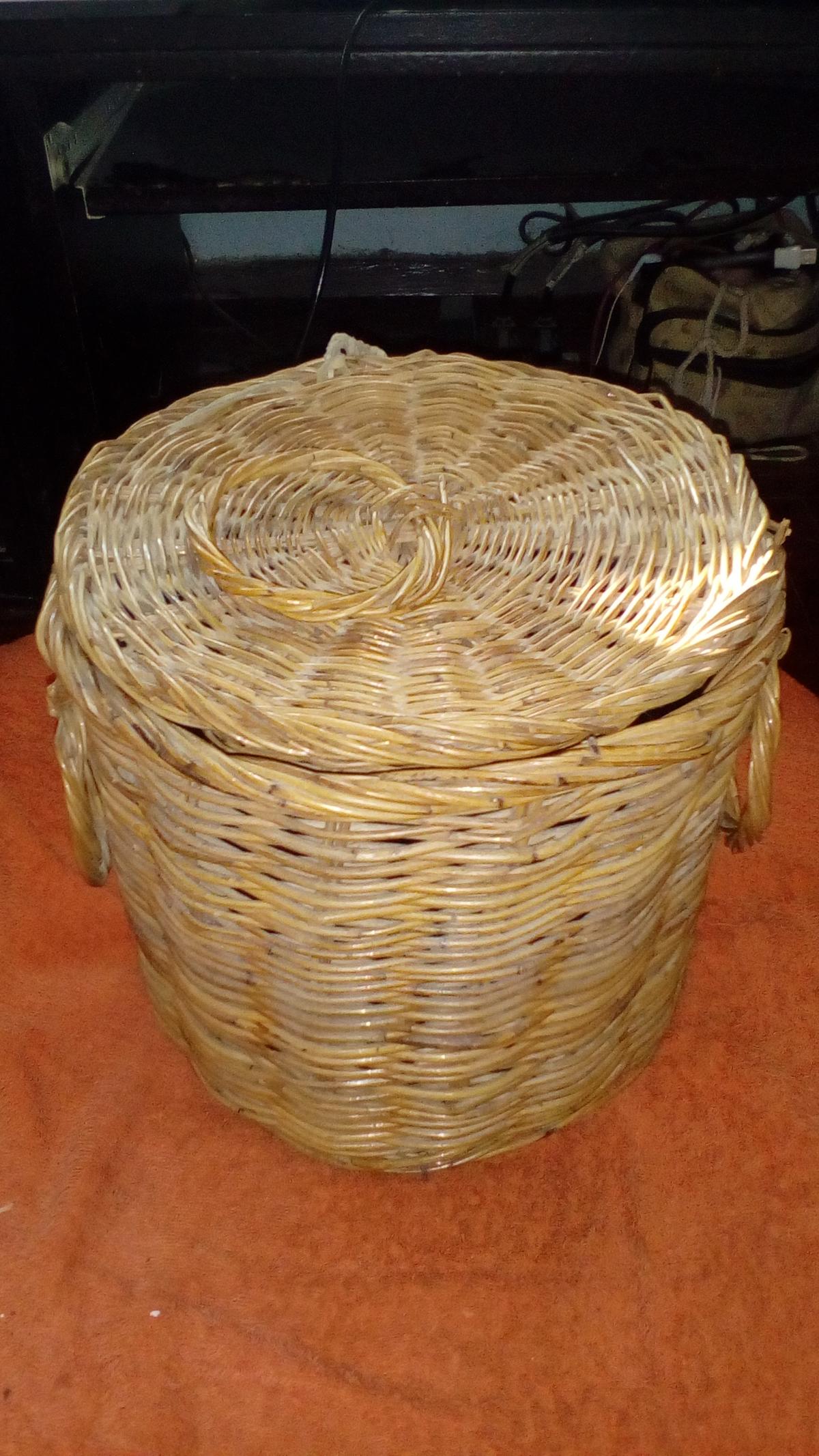 ตระกร้าหวายทรงกลมขนาดกว้าง 11 นิ้ว สูง 9 นิ้ว#ตระกร้าหวายติดรถมอเตอร์ไซค์คลาสสิค##ตระกร้าหวายติดรถจักรยาน#